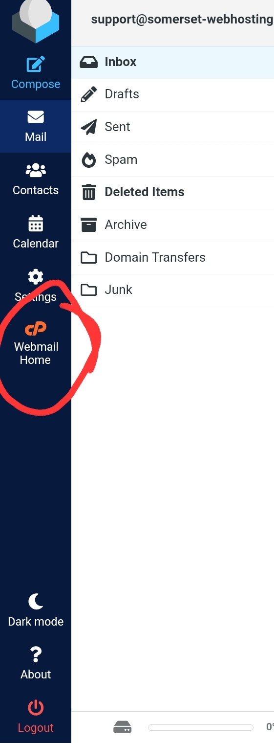 2. Once logged in, in the left side menu, click on ‘Webmail Home'